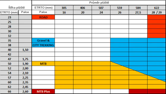 Převodní tabulka vám pomůže se snadným převodem mezi ETRTO a alternativním značením.
