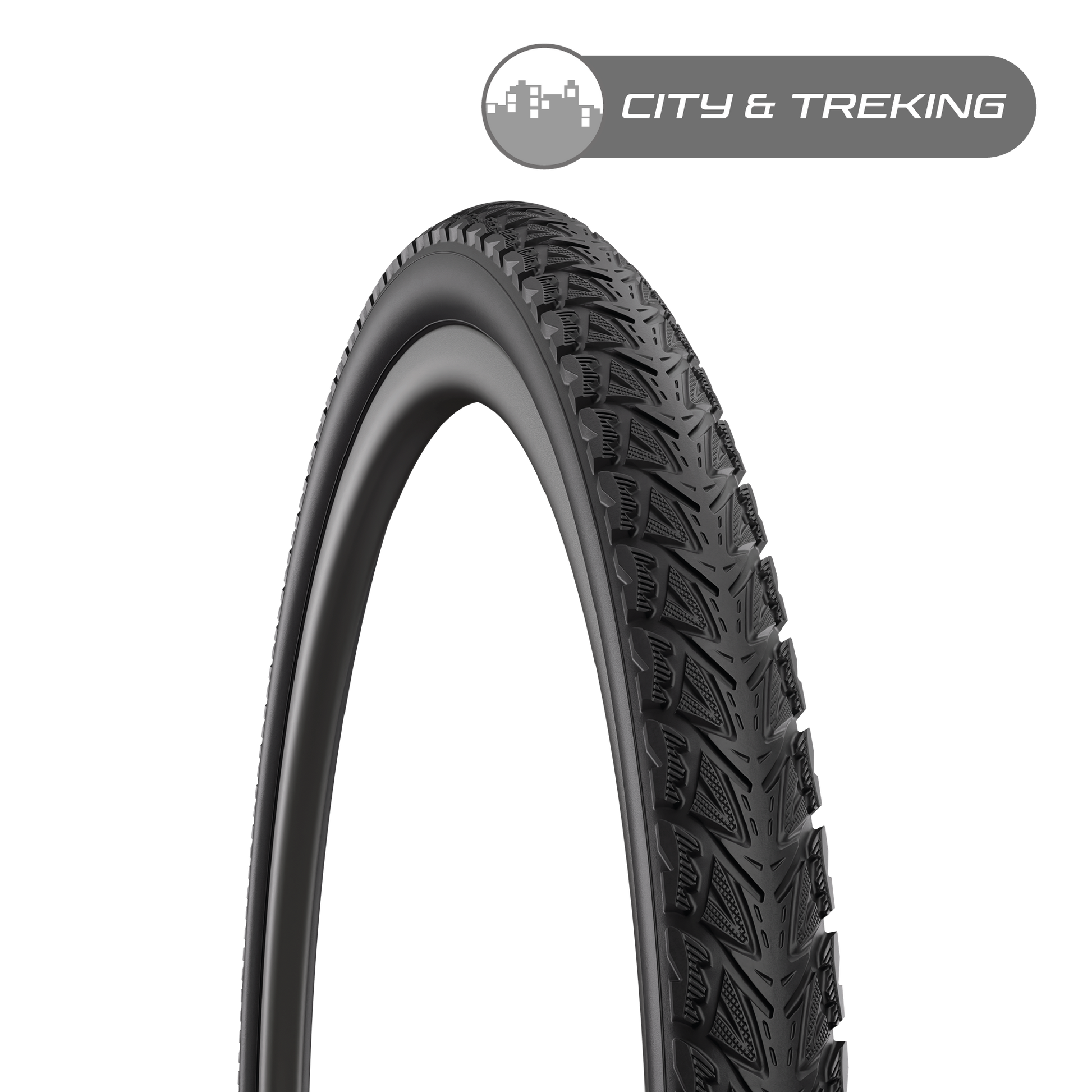 Tread pattern designed for lower quality and unpaved surfaces. The almost smooth central part of the tread ensures less rolling resistance when riding on the road. Some tires are manufactured with additional protective and safety features (suitable for electric bicycles).