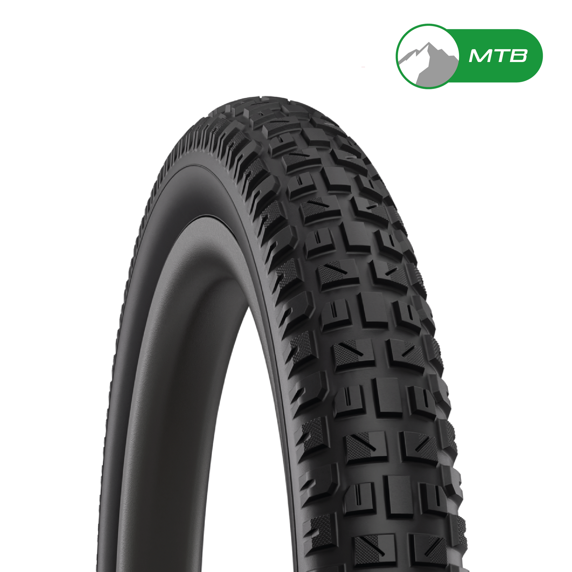 Children's tire with a bicross tread pattern designed for wet BMX tracks or tracks with a softer and coarser finish. The layout and size of the tread pattern ensures ideal traction and tread cleaning.